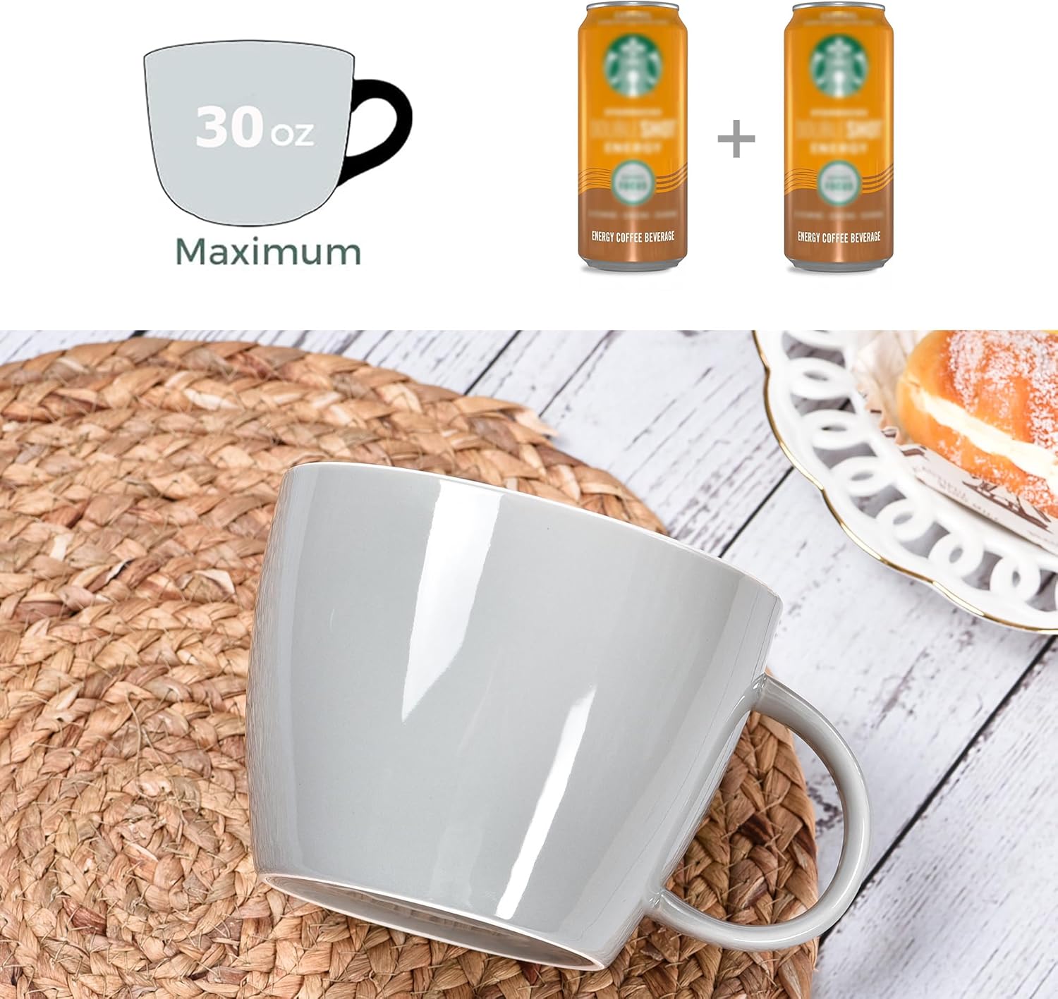 30 Ounce Jumbo Ceramic Coffee Mug for Soup Coffee and Tea - White