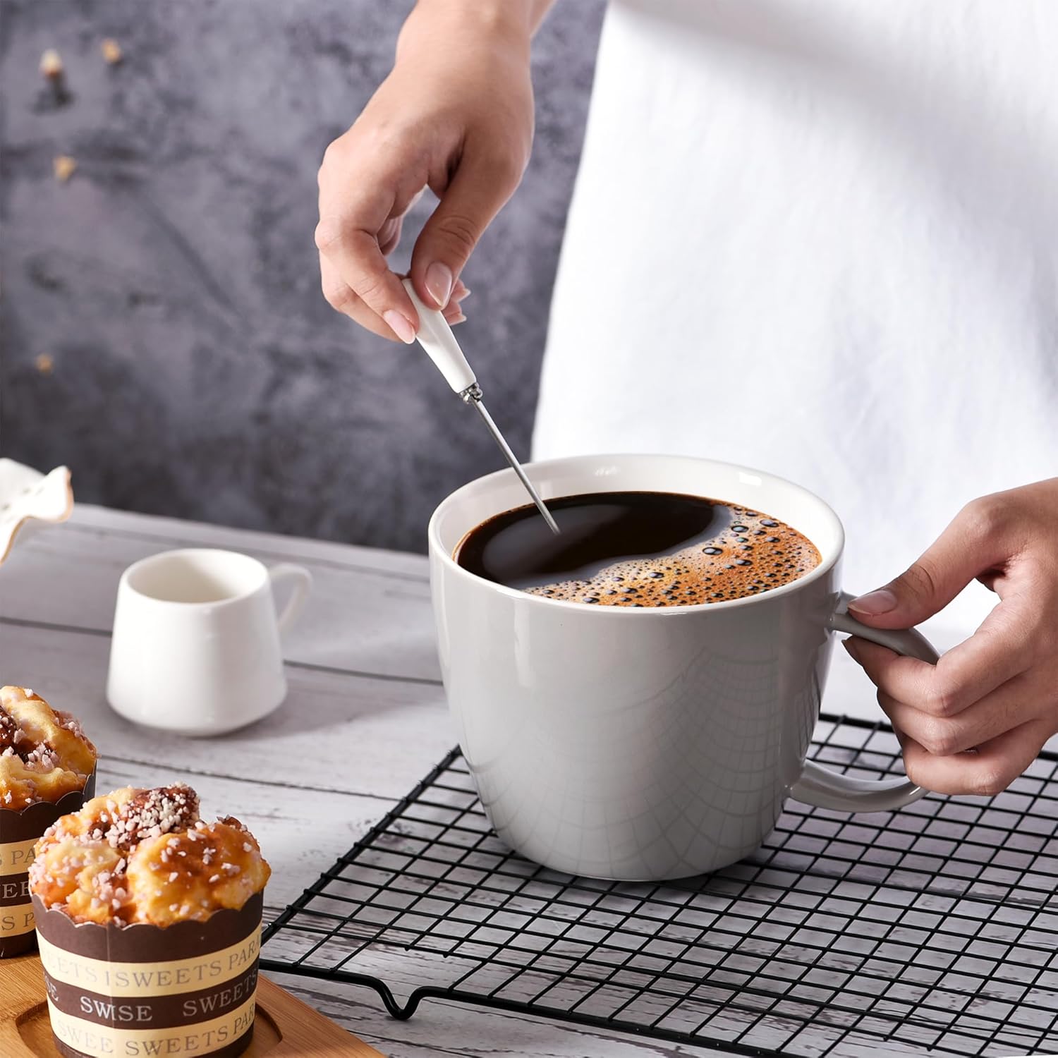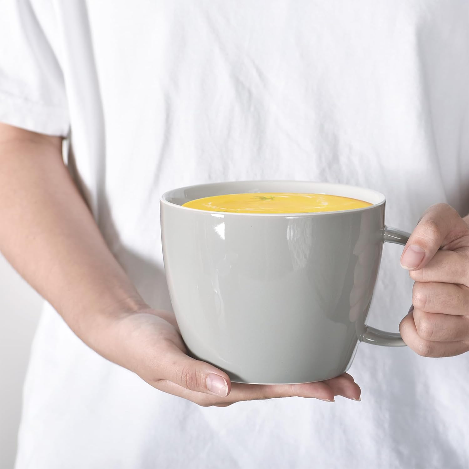 Gray Soup Bowl with Handle, Large Coffee Mug, 30oz